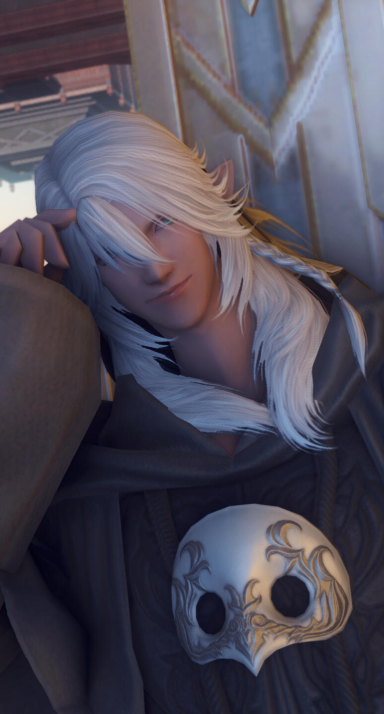 He is harmless and tend to have a mischevious, fun-loving and flirtious outlook, however beneath it all he is a sadomasochist with emotional instability. Broken, (SHB, EW Spoiler :) due to the imbalance of dynamis during the sundering.That does not mean he doesn't have wit- but he choose not to be ignorant of everything around him. And does not walk the path of the Warrior of Light.A chaotic neutral, he tends to just follow his desires and self-serving whims. Having multiple lovers but never settling down. Though he appears only moments during nightfall, Nirav is actually lonely and silently jealous of his white counterpart.Relationship :