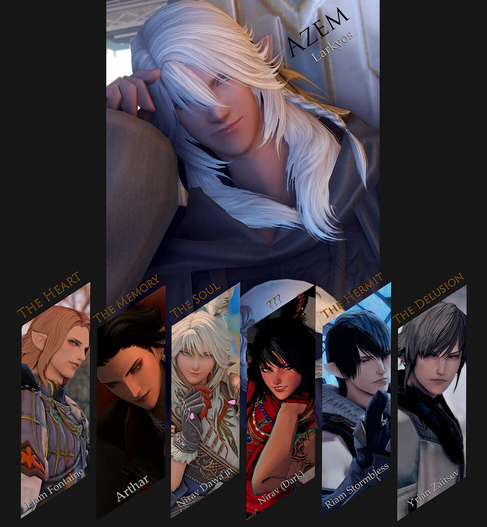 (Endwalker and this character spoiler ahead)During the sundering of the shards, 'the soul' shard is dense, thus it was further splitted into two. While most being have 14 shards- their Azem have 14.5 shards. Nirav Dark is the twin shard of Nirav White.This causes the imbalance of dynamis where Nirav white could not contain and grasp strong emotions, which then flows into Nirav Dark who bears the full brunt of it all- and almost driving him to maddness.Nirav Dark shares the same body and memories of Nirav white, but not the other way round ( for memories).